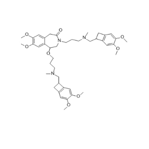 | Synonyms: 5-(3-(((3,4-dimethoxybicyclo[4.2.0]octa-1(6),2,4-trien-7-yl)methyl)(methyl)amino)propoxy)-3-(3-(((3,4-dimethoxybicyclo[4.2.0]octa-1(6),2,4-trien-7-yl)methyl)(methyl)amino)propyl)-7,8-dimethoxy-4,5-dihydro-1H-benzo[d]azepin-2(3H)-one; 5-Hydroxy Ivabradine Dimer | |
