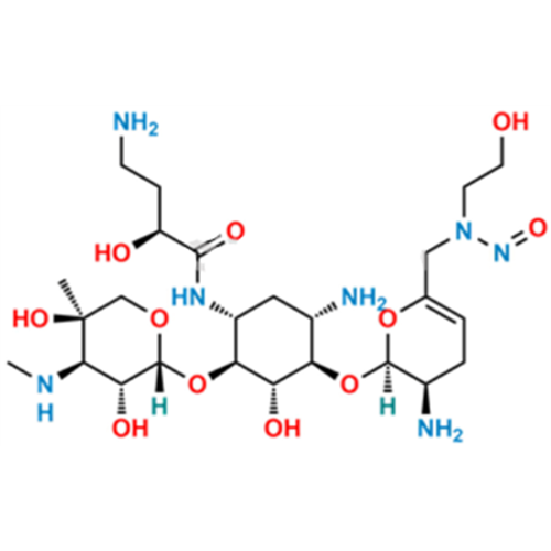 | Synonyms: (S)-4-amino-N-((1R,2S,3S,4R,5S)-5-amino-4-(((2S,3R)-3-amino-6-(((2-hydroxyethyl)(nitroso)amino)methyl)-3,4-dihydro-2H-pyran-2-yl)oxy)-2-(((2R,3R,4R,5R)-3,5-dihydroxy-5-methyl-4-(methylamino)tetrahydro-2H-pyran-2-yl)oxy)-3-hydroxycyclohexyl)-2-hydroxybutanamide | |